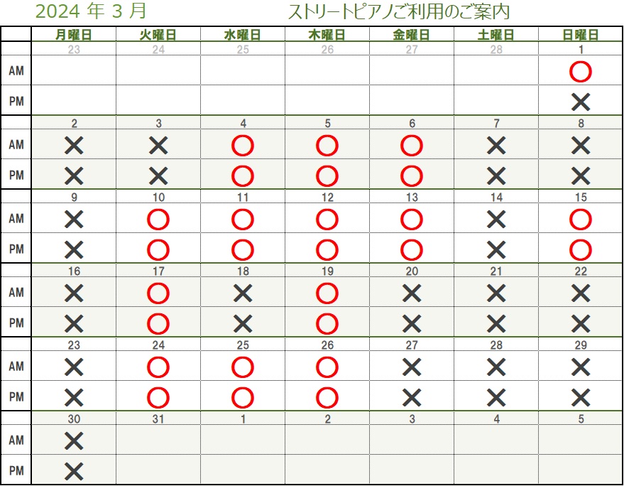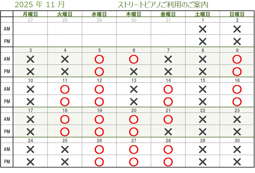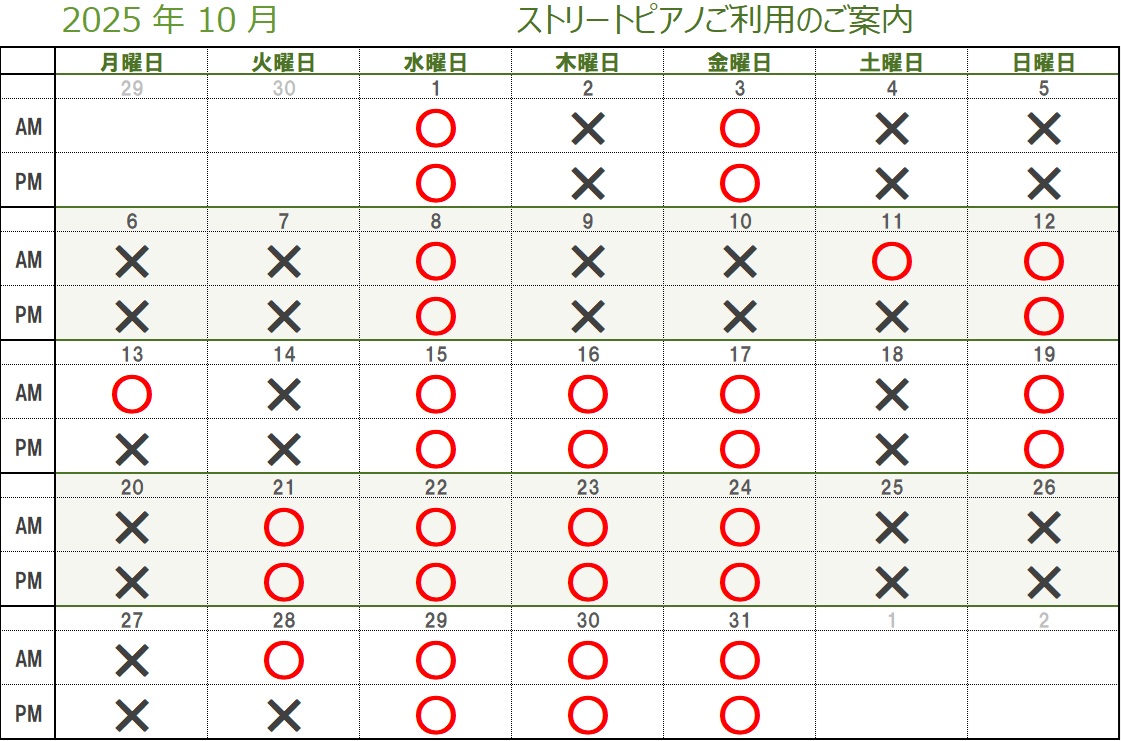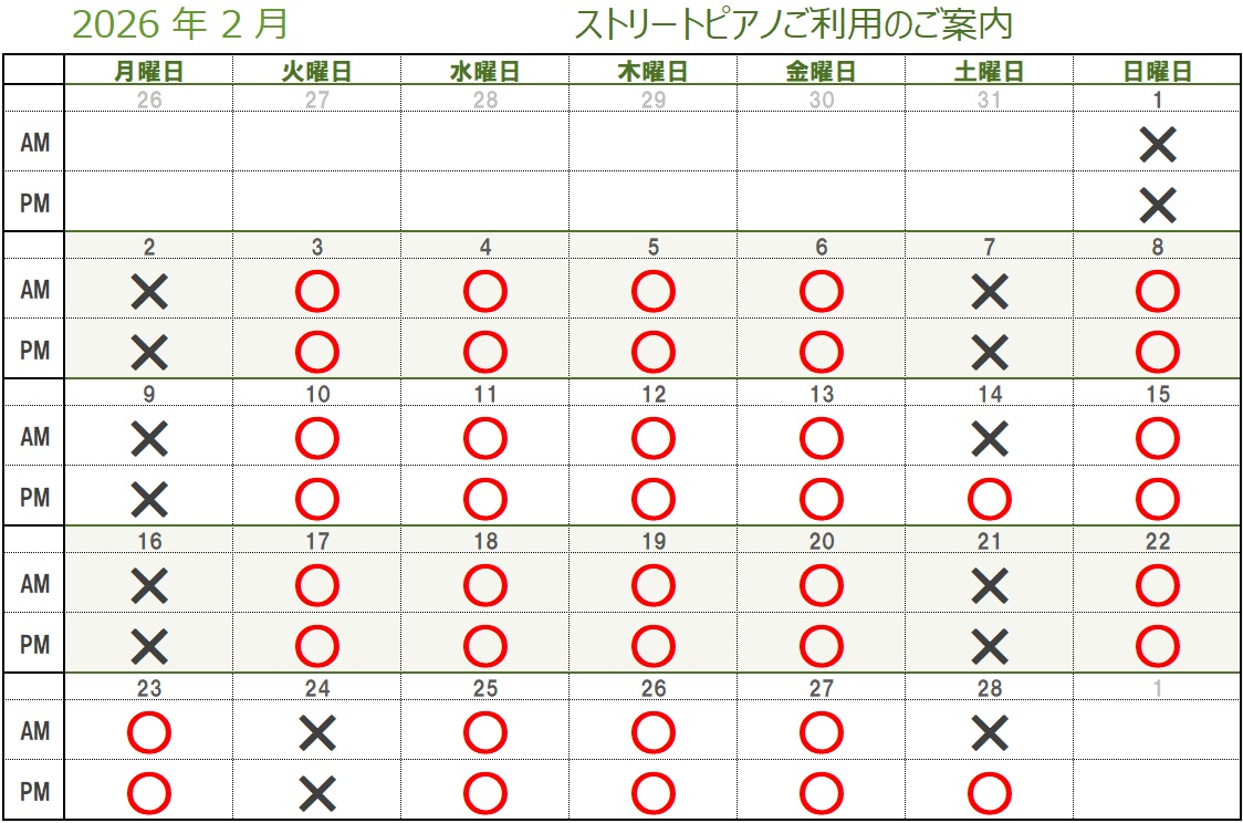 ハーティーセンターではストリートピアノを設置しました。ご自由にお弾きください! ※詳細はこちらをご確認ください。 ※演奏できる日は以下のカレンダーをご確認ください。